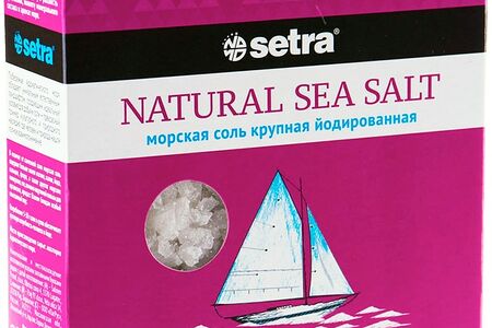Соль Setra Natural Sea Salt морская крупная йодированная 500г - полезная альтернатива поваренной соли. Она добывается в Словении, в акватории Адриатического моря. Производится путем выпаривания морской воды под воздействием природных факторов: ветра и солнца. Специальные бассейны с морскими водорослями на дне защищают кристаллы соли от грязи и помогают сохранить ценный минеральный состав полностью. Обогащена йодатом калия. Крупная соль лучше всего подходит для приготовления горячих блюд, супов, она прекрасно растворяется в кипящей воде. Ее можно использовать для засолки рыбы и консервирования овощей. Упакована в картонную коробку, легко открывается, экономичный объем.