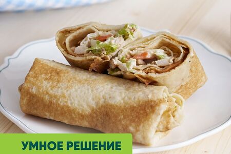 Завернули салат Цезарь в блинчик - получилось вкусное и оригинальное блюдо для сытного завтрака, обеда, перекуса или ужина. Тонкие блинчики приготовлены по классическому рецепту и обжарены до золотистого румянца, а начинка для них повторяет знаменитый салат: в ней есть и запеченное куриное филе, и хрустящий салат айсберг, и сладкие помидоры черри, и пикантный соус Цезарь - без него никак! Просто немного разогрейте блинчики на сковороде или в микроволновой печи. Готовая еда Умное решение от Vprok.ru - это по-домашнему вкусные блюда, приготовленные без добавления искусственных консервантов, красителей и усилителей вкуса. Попробуйте все и выберите свои любимые!