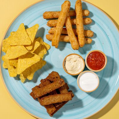 Хлеб солодовый, хлеб бородинский, багет, намазка сливочная (сыр творожный, масло сливочное), соль четверговая