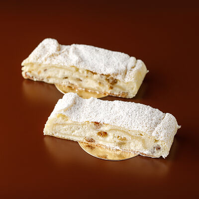 Тесто бездрожжевое, творог, изюм, сахарная пудра