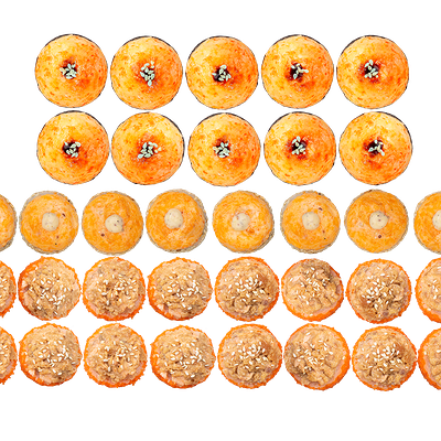 ролл Филадельфия в масаго, ролл Филадельфия в угре, ролл Калифорния в масаго, ролл Сочная креветка (815г)