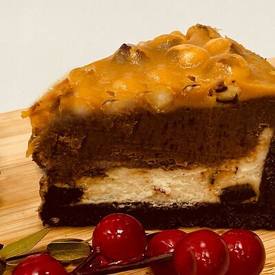 Чизкейк, который выпекается минимум времени, но при высокой температуре, что даёт ему запечённую корочку и очень нежную текстуру