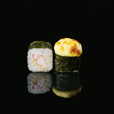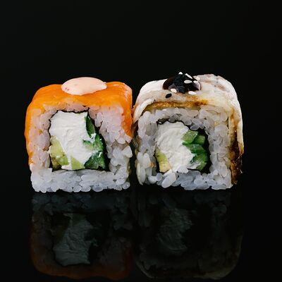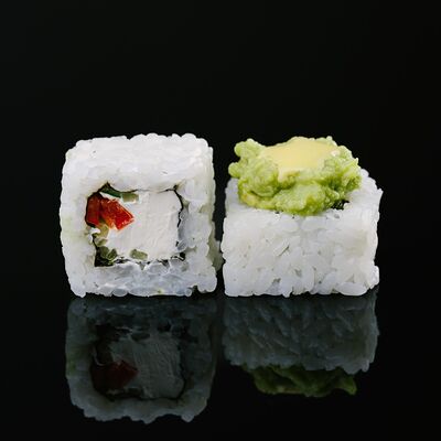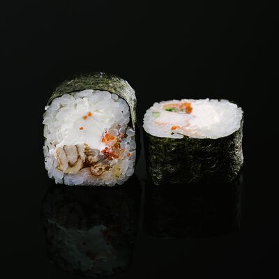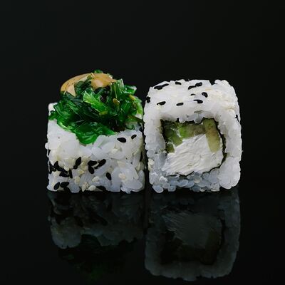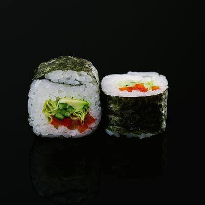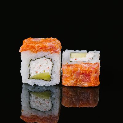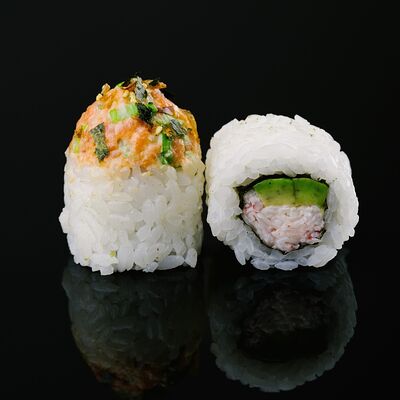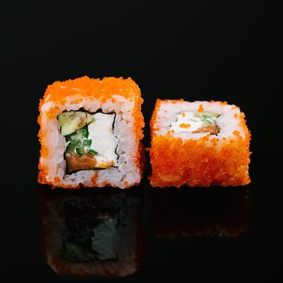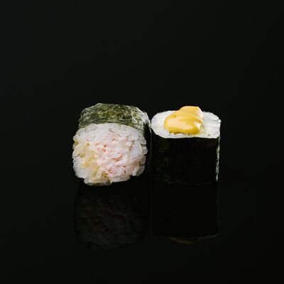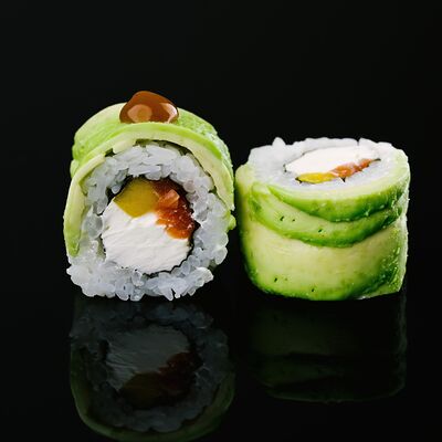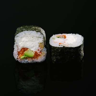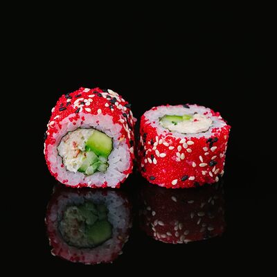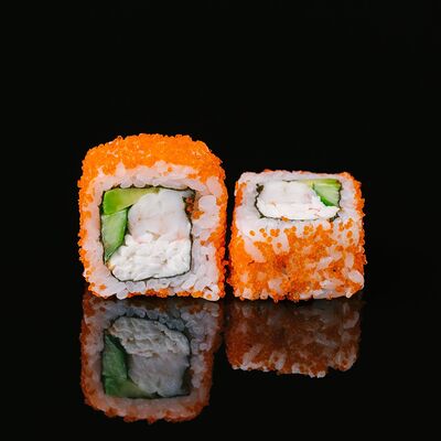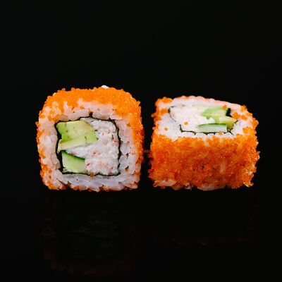Водоросли нори, рис, крабовый микс, икра летучей рыбы, авокадо, огурцы (8 шт.)