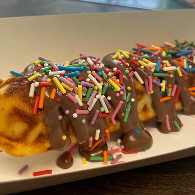 Корн дог с шоколадной пастой и посыпкой доставка