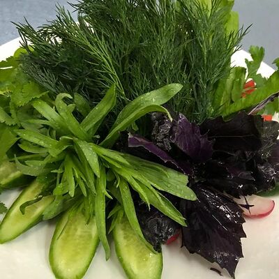 Баранина (корейка и мякоть), курица, говяжья вырезка, овощи (томаты, картофель, лук, перец, баклажан, грибы, зелень)