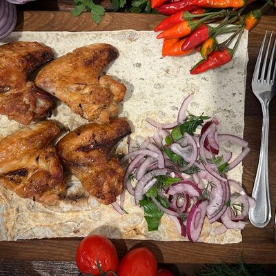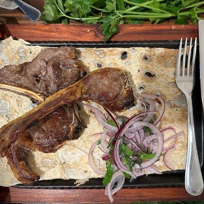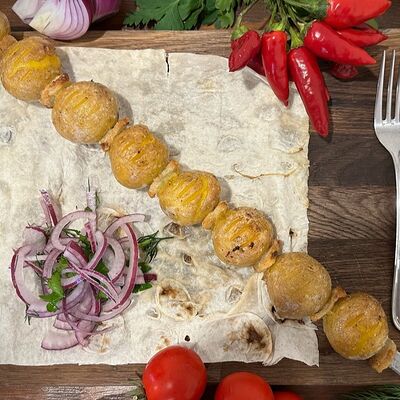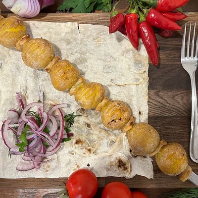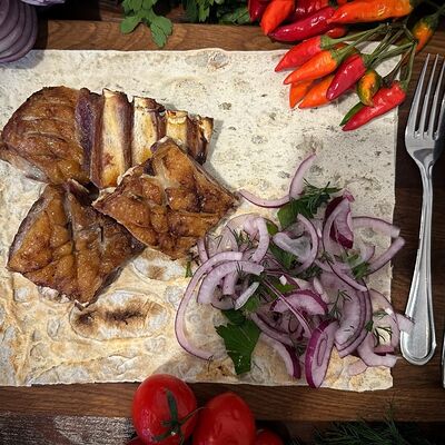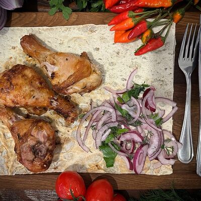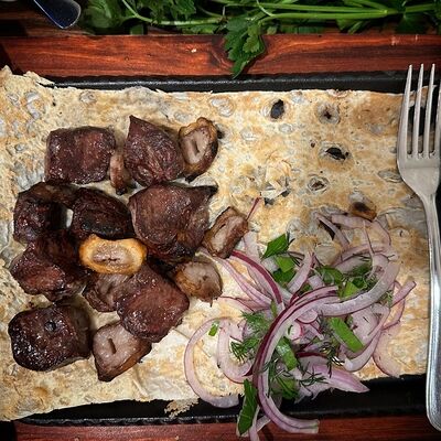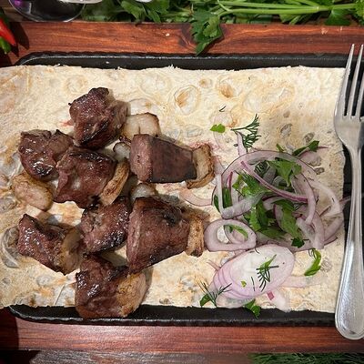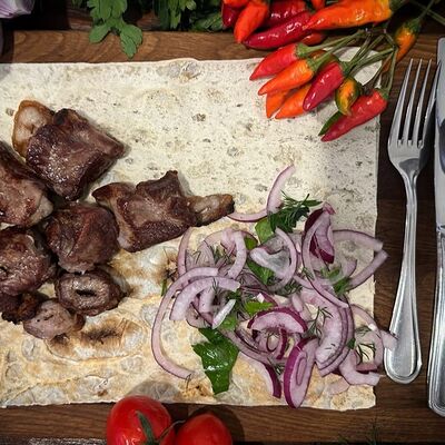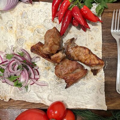 Подается с зеленью, луком и тонким армянским лавашом. Обжарка 15-20%
