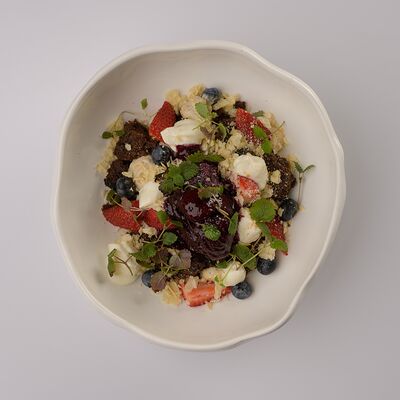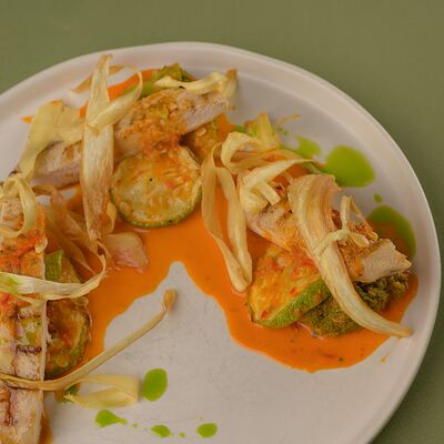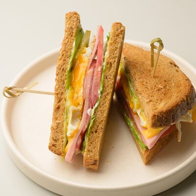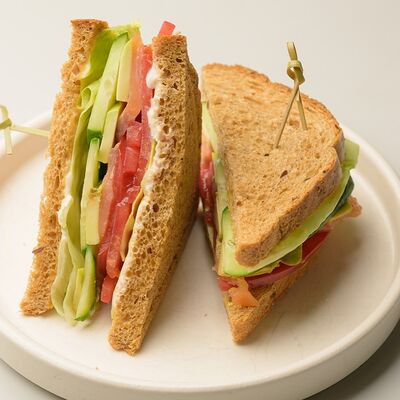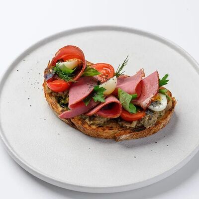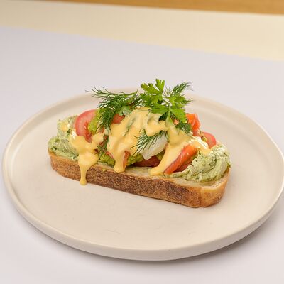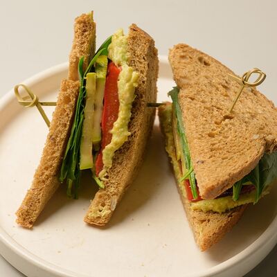 Тост, крем-чиз с зеленью, печёный перец, печёный цукини, гуакамоле, авокадо, шпинат