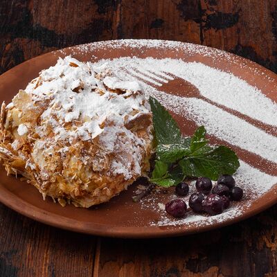 Слоеное тесто, мед, грецкий орех, сахарная пудра