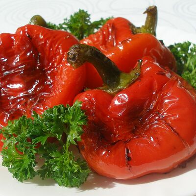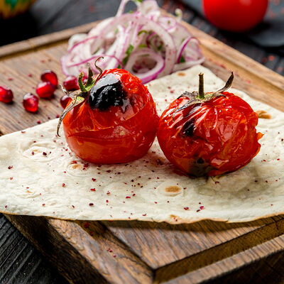 Мясной фарш (баранина, реже говядина), помидоры, болгарский перец, лук, чеснок, зелень, чёрный перец, острый перец