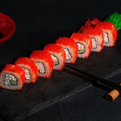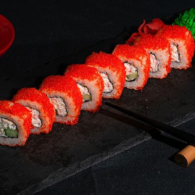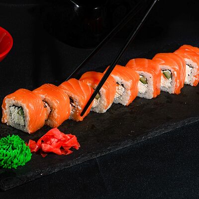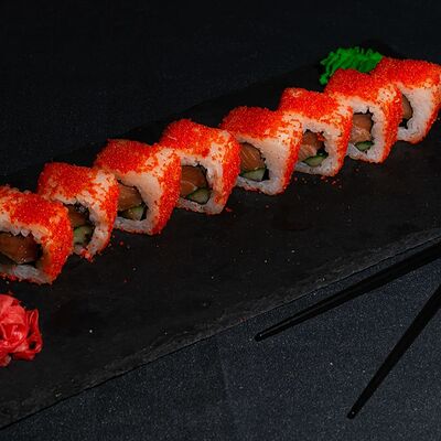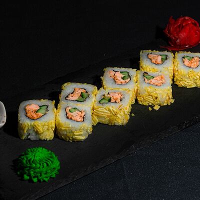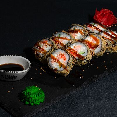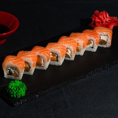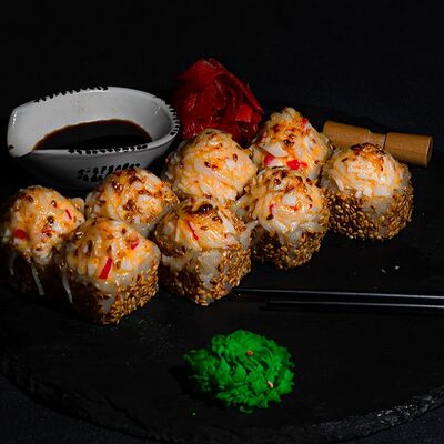 Запеченный ролл с лососем и снежным крабом доставка