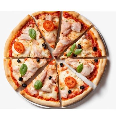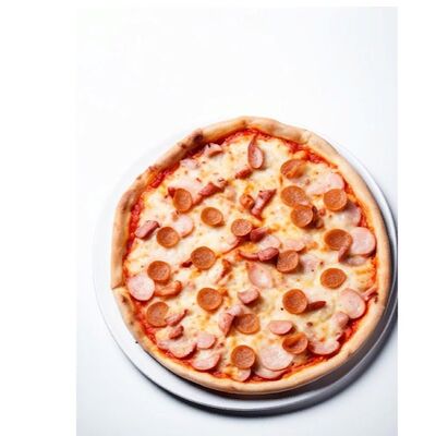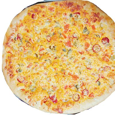 Шампиньоны, помидоры свежие, огурцы маринованные, сыр гауда, соус томатный, соус белый, соус пикантный, тесто собственной закваски (мука пшеничная высшего сорта, масло растительное, соль, сахар, дрожжи, закваска) (36 см)