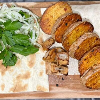 Шашлык, лук, лаваш