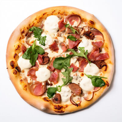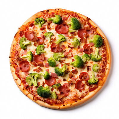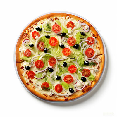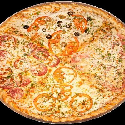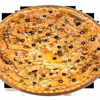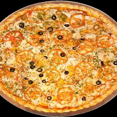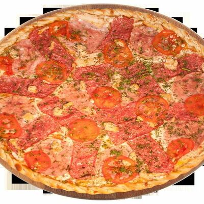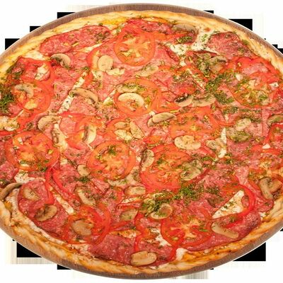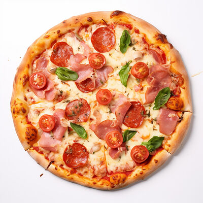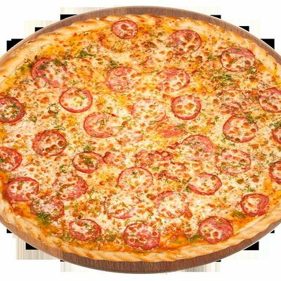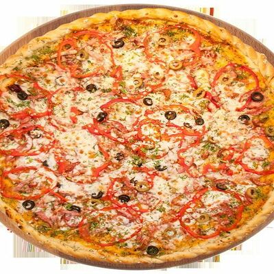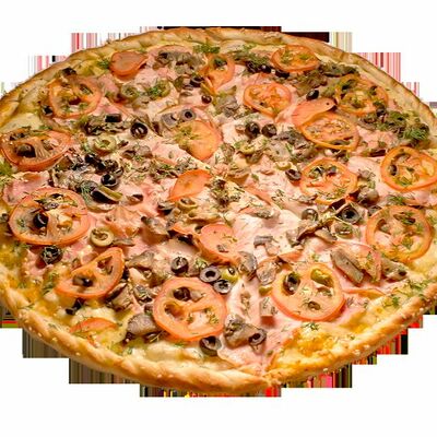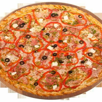 Куриная грудка, помидоры, маслины, ветчина, салями, сыр брынза (45 см)