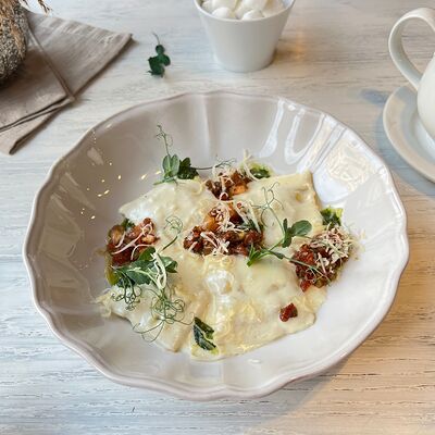 Разноцветные пельмешки с цыпленком и сметаной доставка