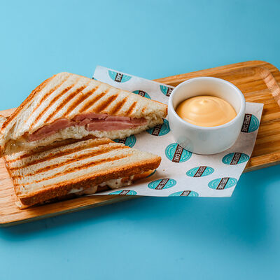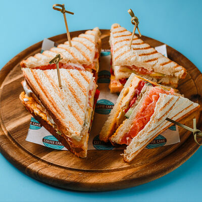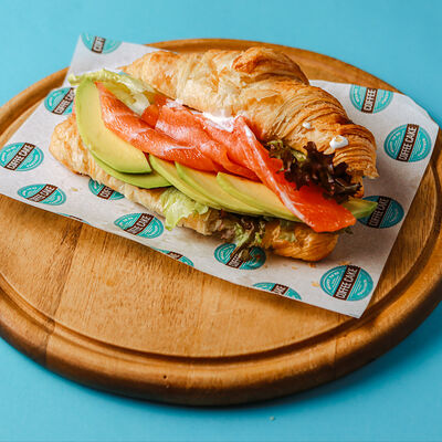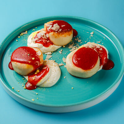 Блины с лососем, пашот и сливочно-горчичным соусом доставка