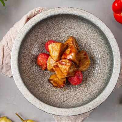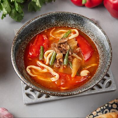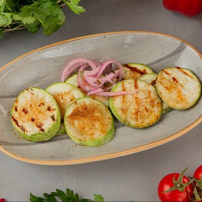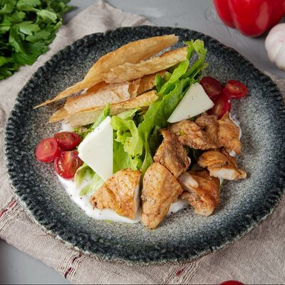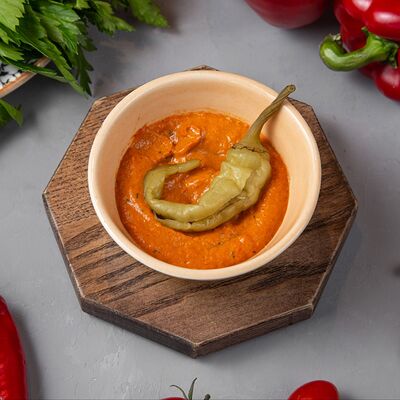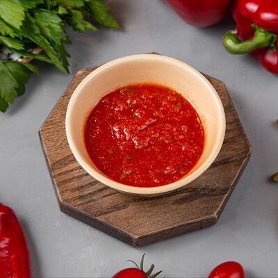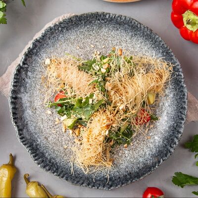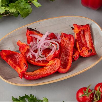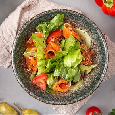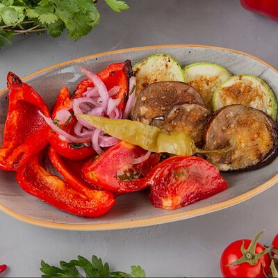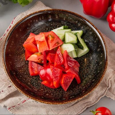 Огурец, томат, болгарский перец. Аллергены: томат, перец, кинза
