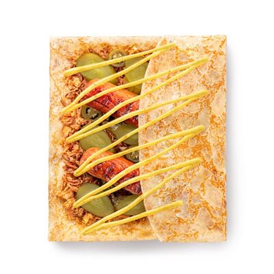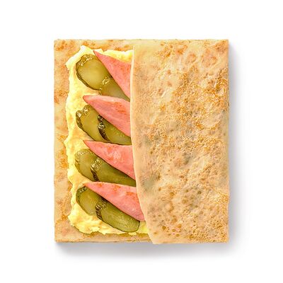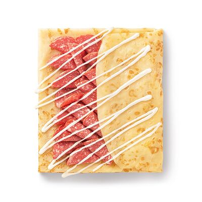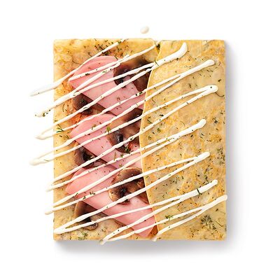 В начинке всего два ингредиента: фермерская ветчина и сыр, но сколько удовольствия в них скрыто. Любимая классика, от которой нельзя отказаться. Тесто содержит молоко, муку, яйца, соль, сахар
