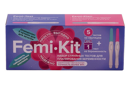 Набор струйных тестов для определения овуляции и беременности 5шт+1шт FEMiKIT доставка