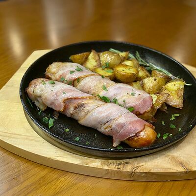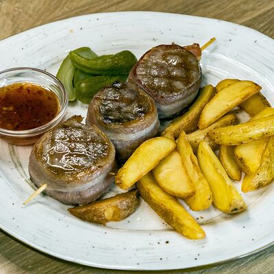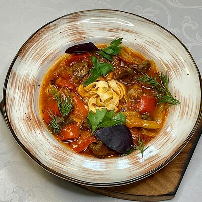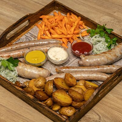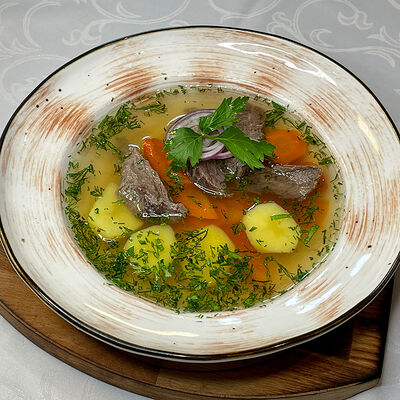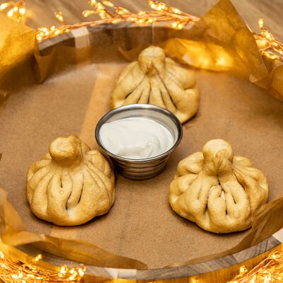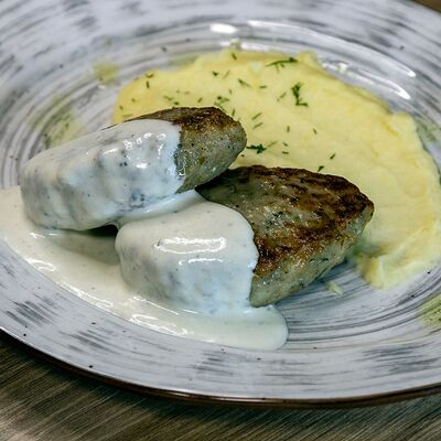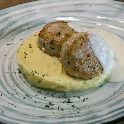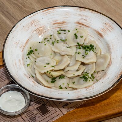 Свинина, говядина, лук, вода, курица, соль, специи. Подаются с куриным бульоном и сметаной