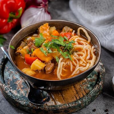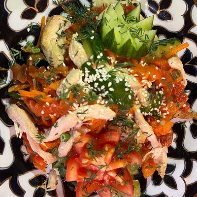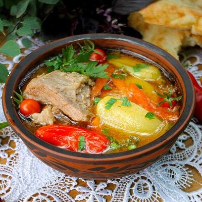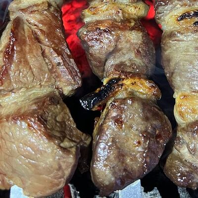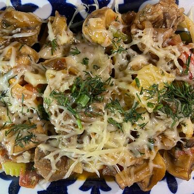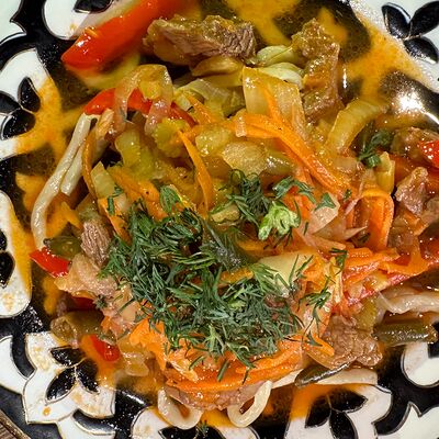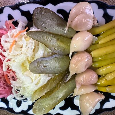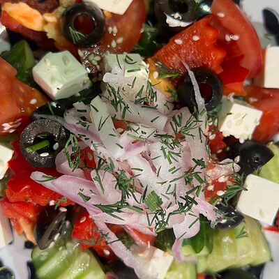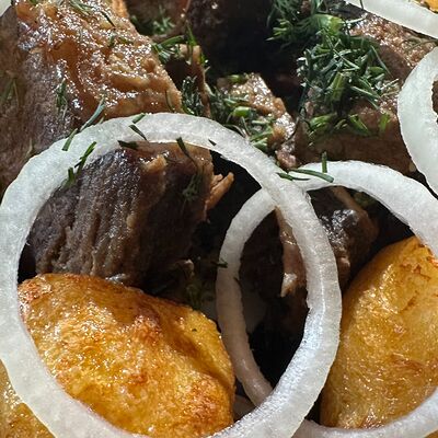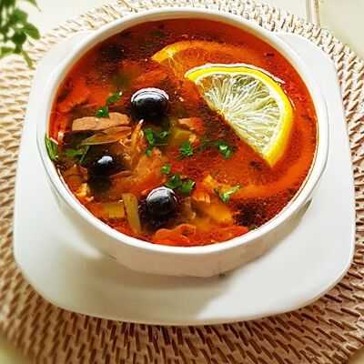 Говядина, колбаса полукопченая, маслины, лук, огурцы соленые