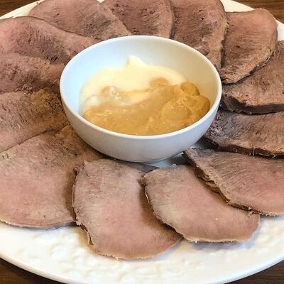 Говяжий язык, хрен, зелень