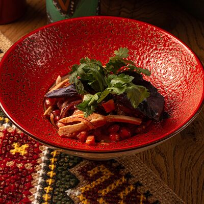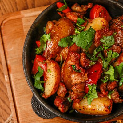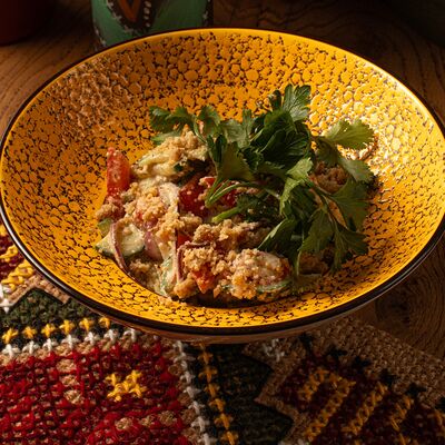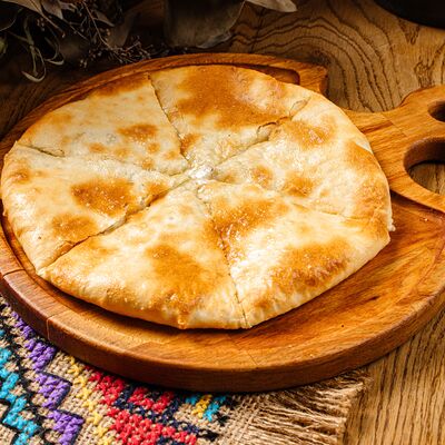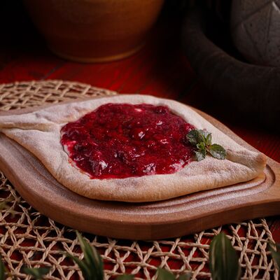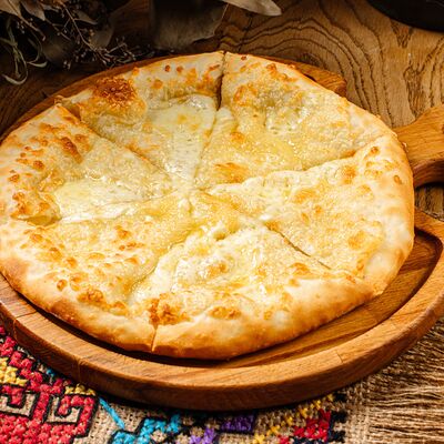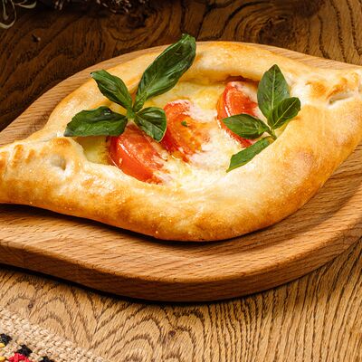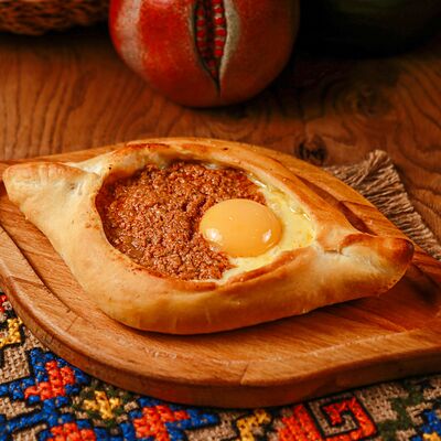 Хачапури-лодочка с беконом, сыром, вялеными томатами и яйцом