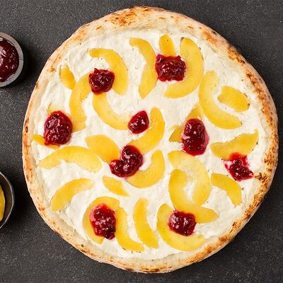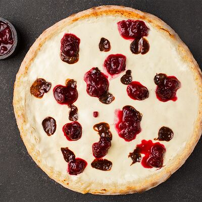 Соус альфредо, моцарелла, камамбер, чеддер, пармезан, вишнёвый джем