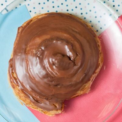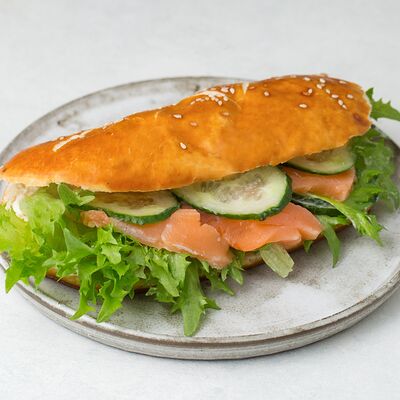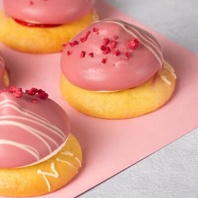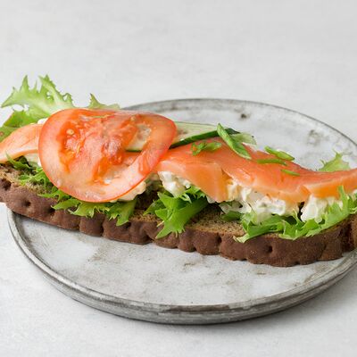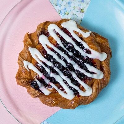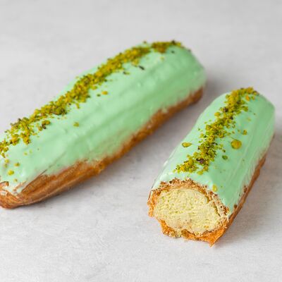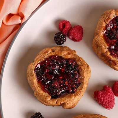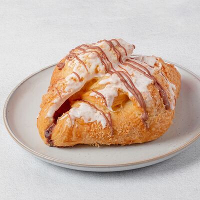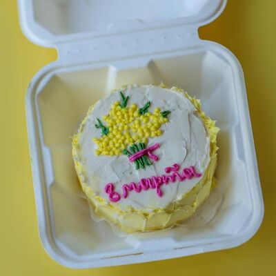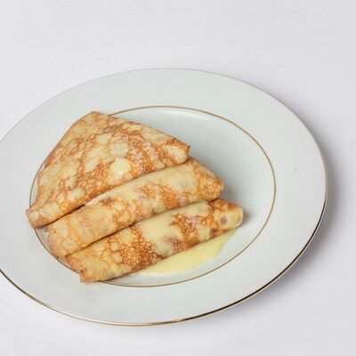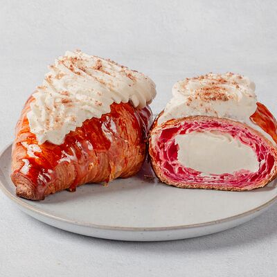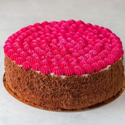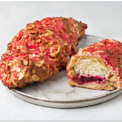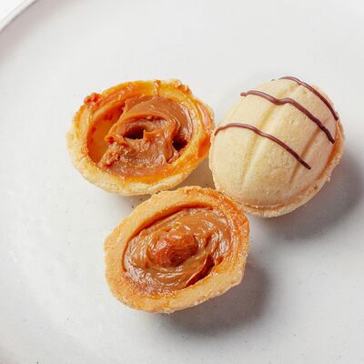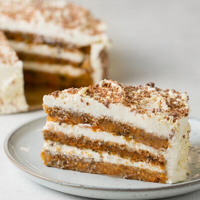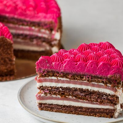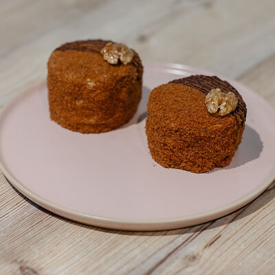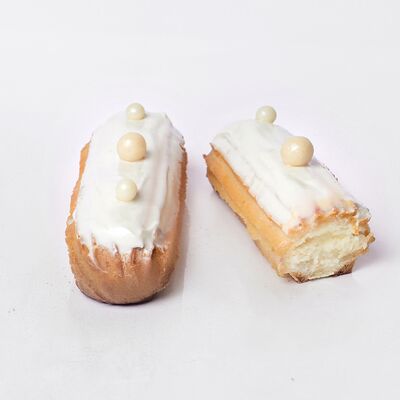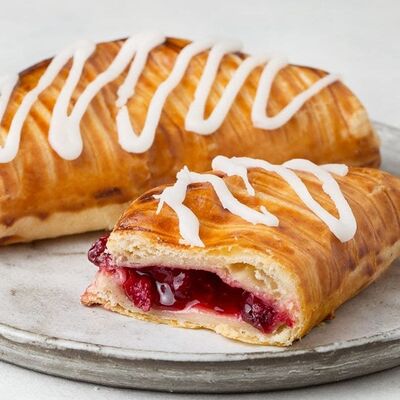 Десерт из сливочного сыра с добавлением сливок, на основе из песочного теста, покрыт абрикосовым гелем и обсыпан лепестками миндаля. Сверху украшен клубникой