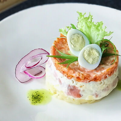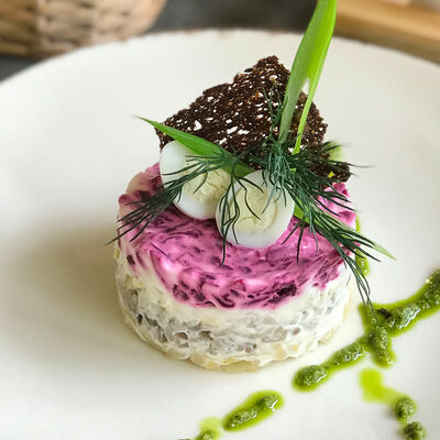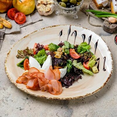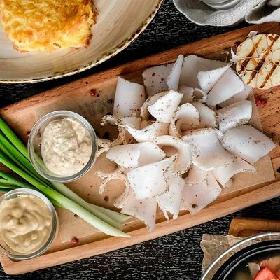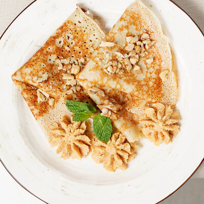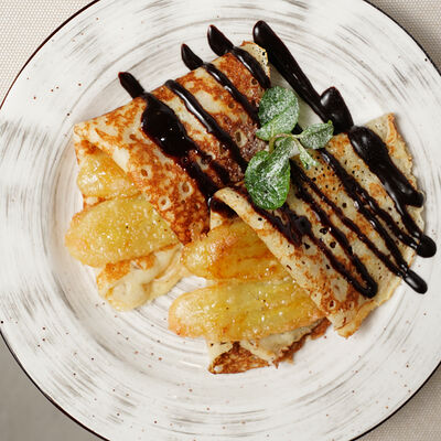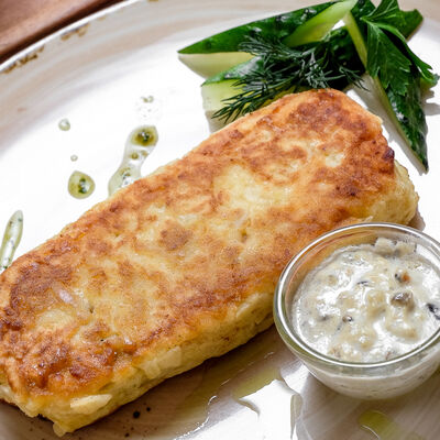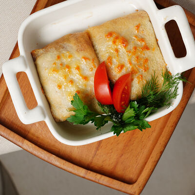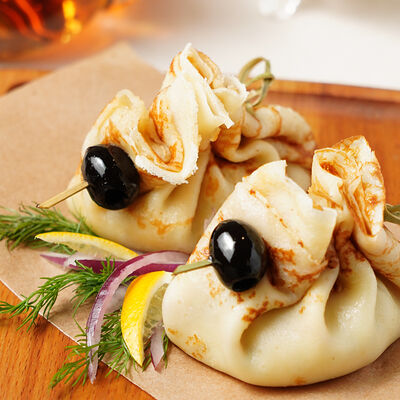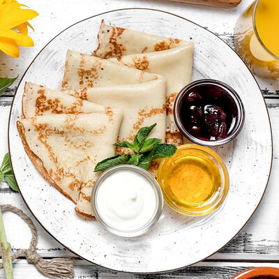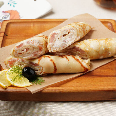 Ветчина, сыр, майонез, зелень, сметана, масло растительное, тесто блинное