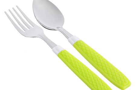 Набор столовых приборов для детей 2 пр. (ложка 15см + вилка 16см), нерж.сталь, полипропилен, 4 цвета доставка