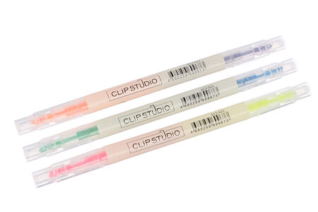 Маркер-выделитель от ClipStudio - это 2-сторонний маркер-выделитель, разные цвета с каждой из сторон. Его используют, чтобы выделять в печатном и рукописном тексте важную информацию. Хорошо лежит в руке и не скользит. Толщина линии 3 мм - хватает, чтобы полностью выделить строку текста. Не отображается на ксерокопиях и факсах. Не пропитывает бумагу и не размазывает рукописный текст.
