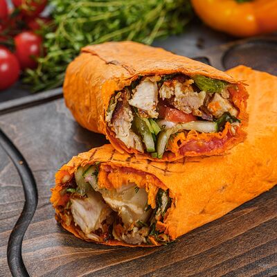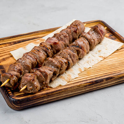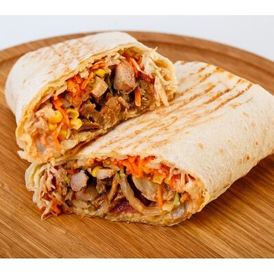 Капуста, помидор, огурец, лук, фирменный соус, шашлычный соус