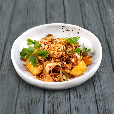 Фирменный картофель из батата с необычным сочетанием сладкого и солёного вкусов. Стоит попробовать