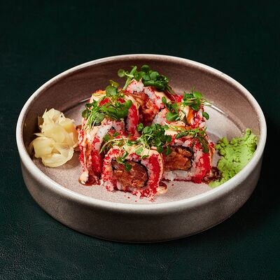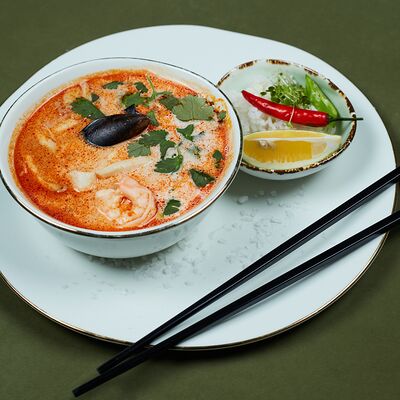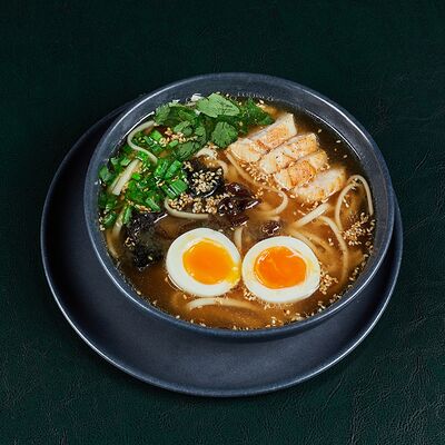 Куриное филе, морковь, цукини, сладкий перец, соевый соус, терияки, кунжутное масло, кинза, пшеничная лапша