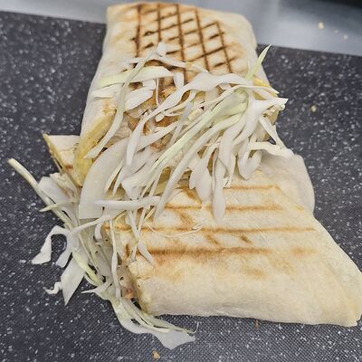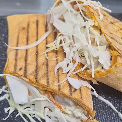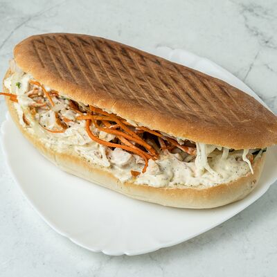 Фарш из курицы, капуста, морковь корейская, помидоры, лук, фирменный соус
