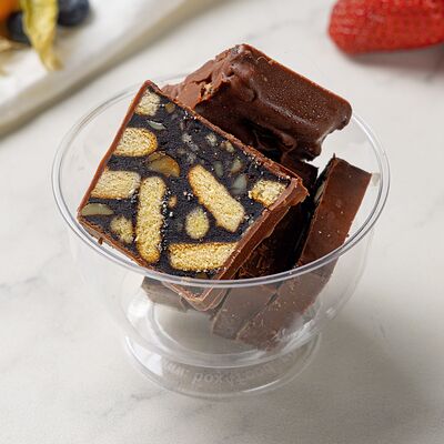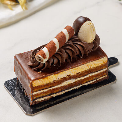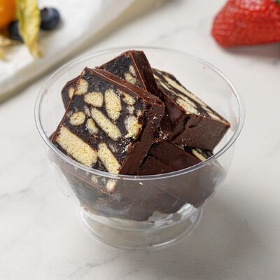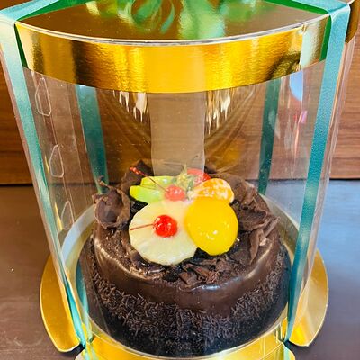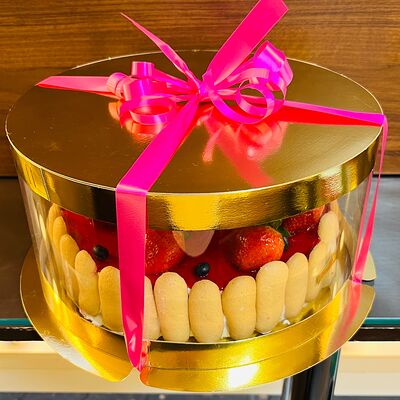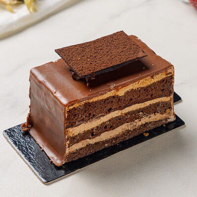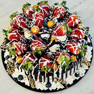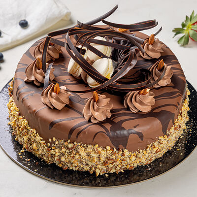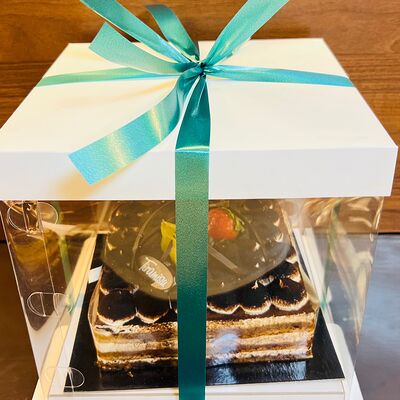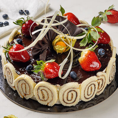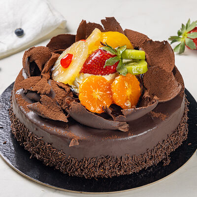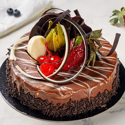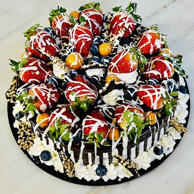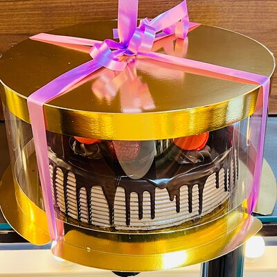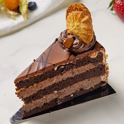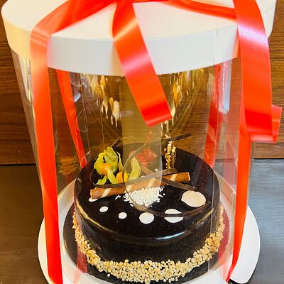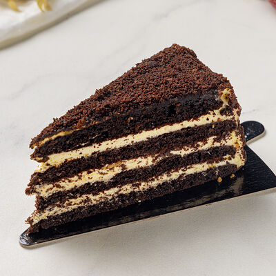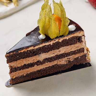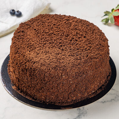 Основа: шоколадный тонкий бисквит Наполнение: натуральные сливки с добавлением натуральной сметаны Оформление: шоколадная крошка и какао