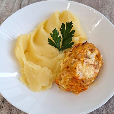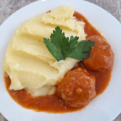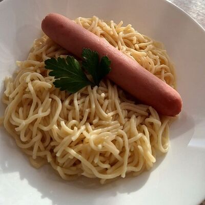 Сосиски молочные высшего сорта (1 шт.), гарнир на выбор