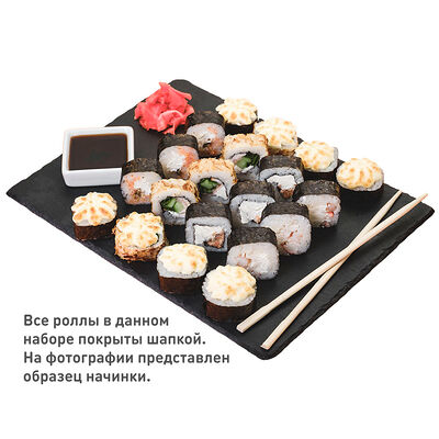 Рис, нори, креветка, имитация краба, сливочный сыр, майонез, моцарелла
