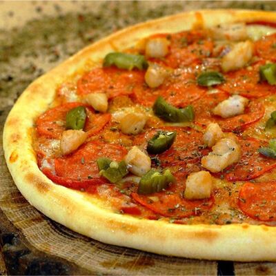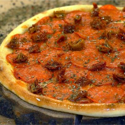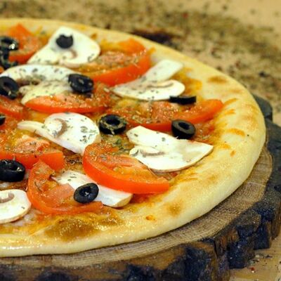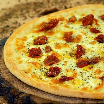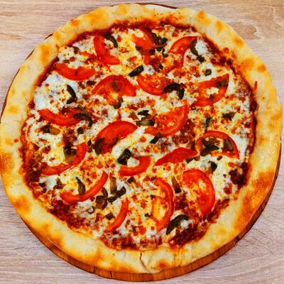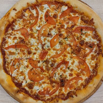 Томатная основа, увеличенная порция сыра моцарелла, томаты, прованские травы, оливковое масло (33 см)