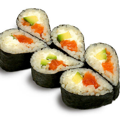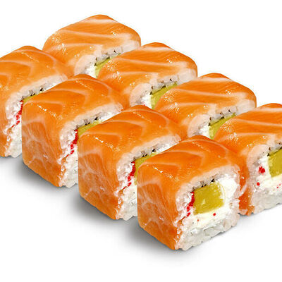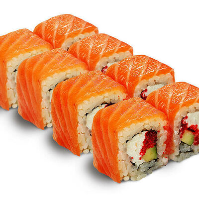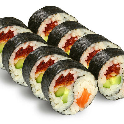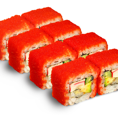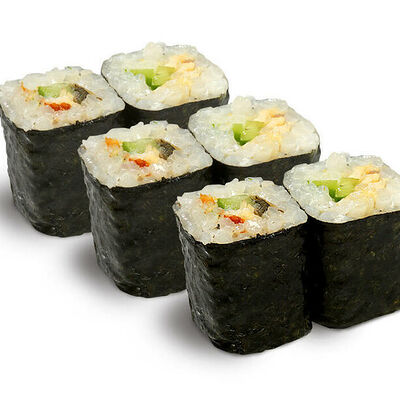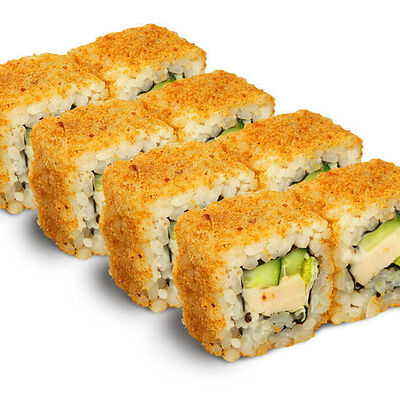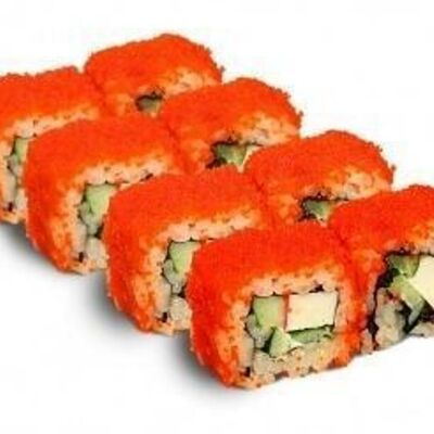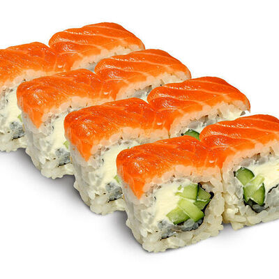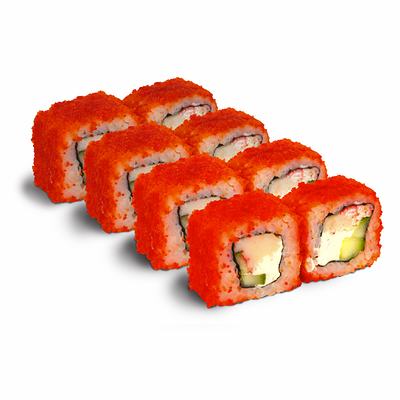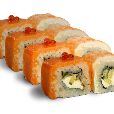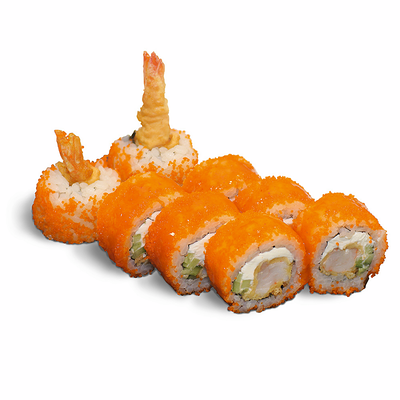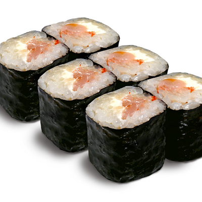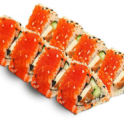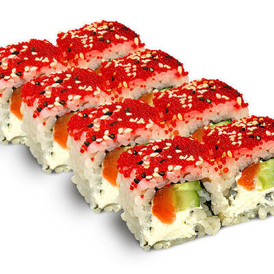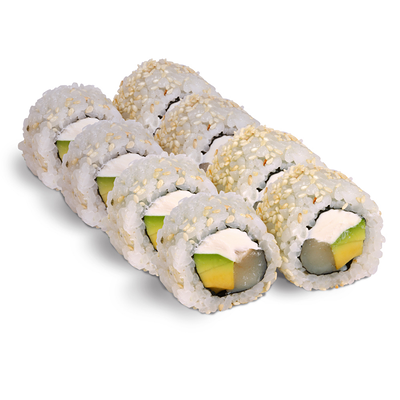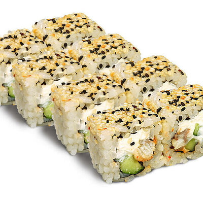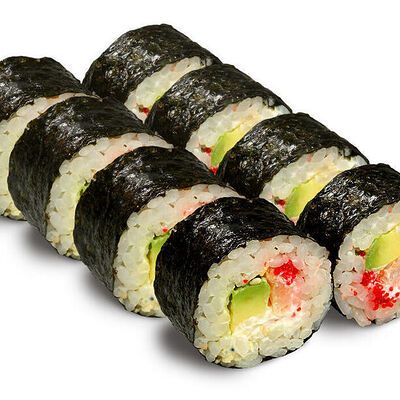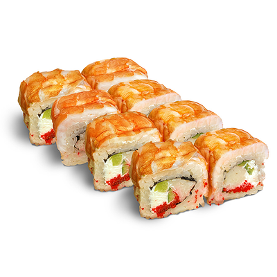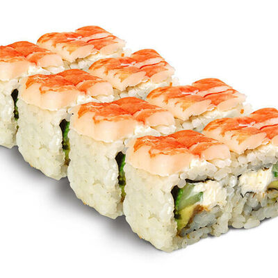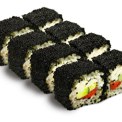 Рис для суши, нори, креветки, сыр, авокадо, икра масаго, кунжут