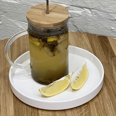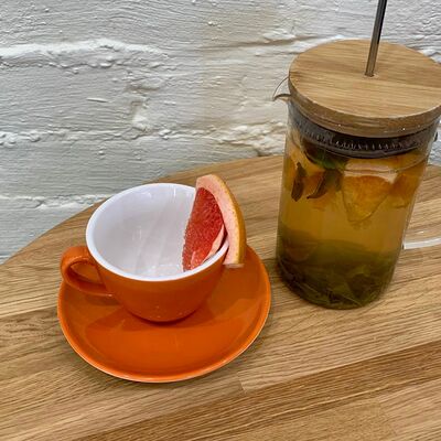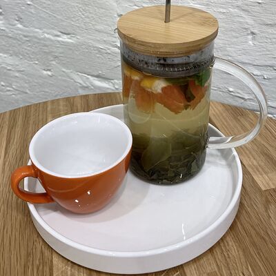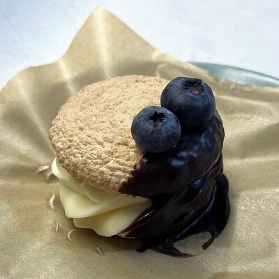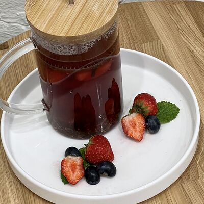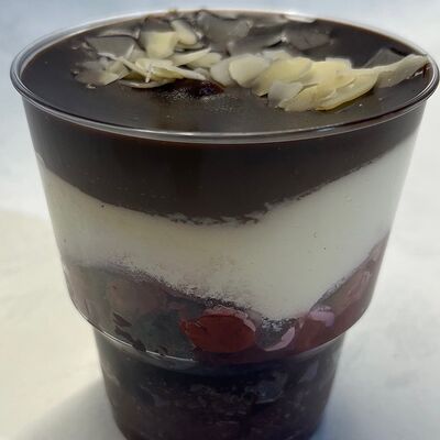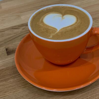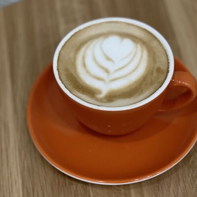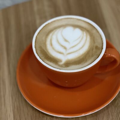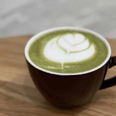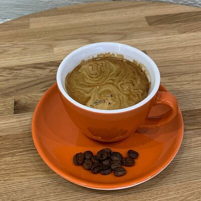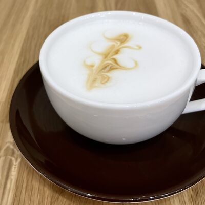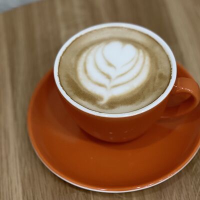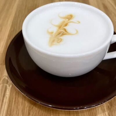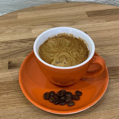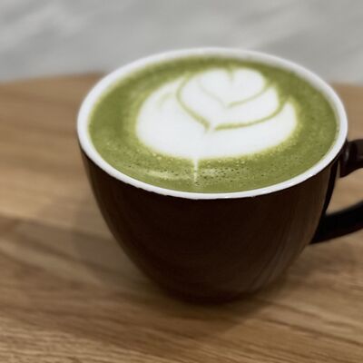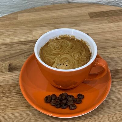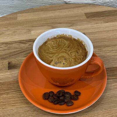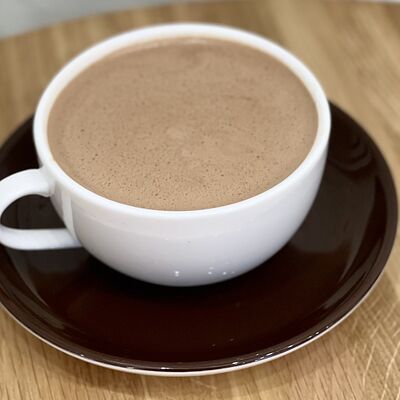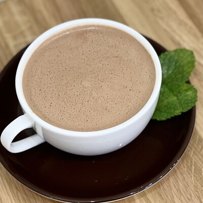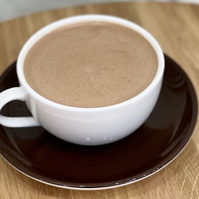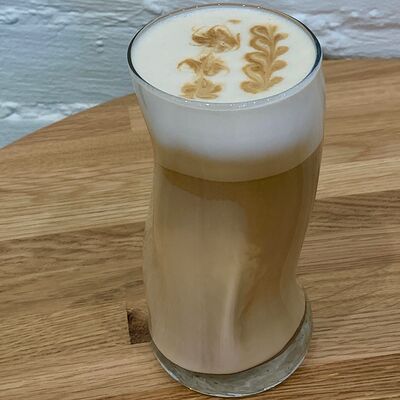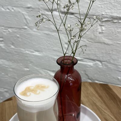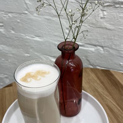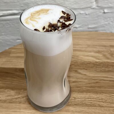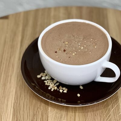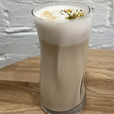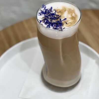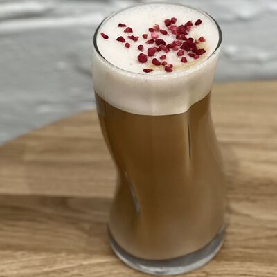 Фундучное молоко на соевой основе, сушеная малина, эспрессо и для сладости сироп малина