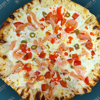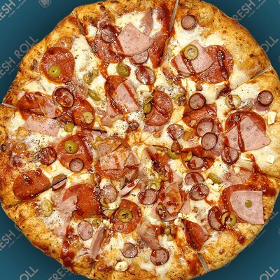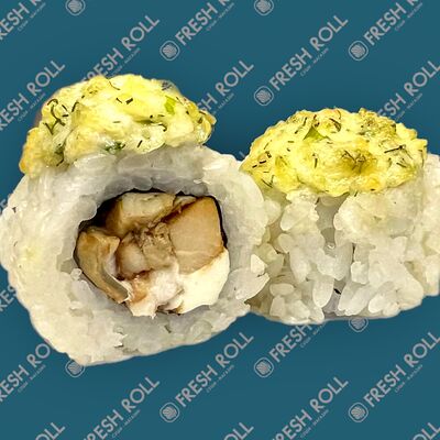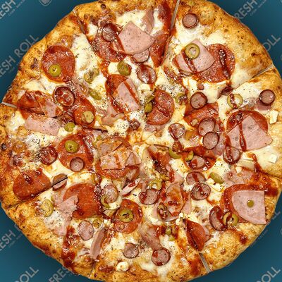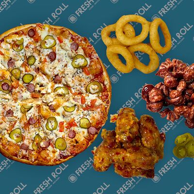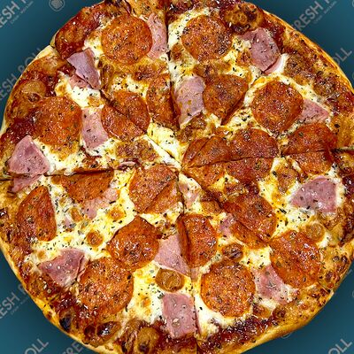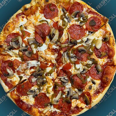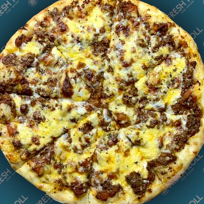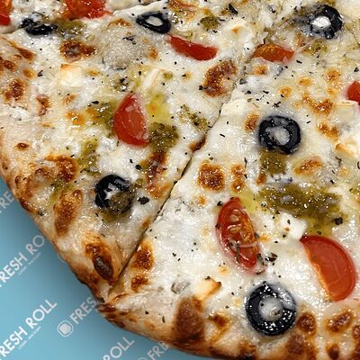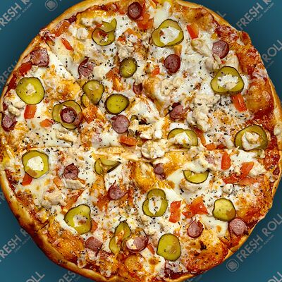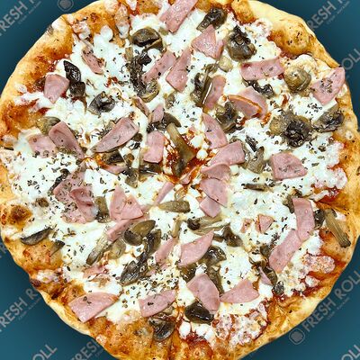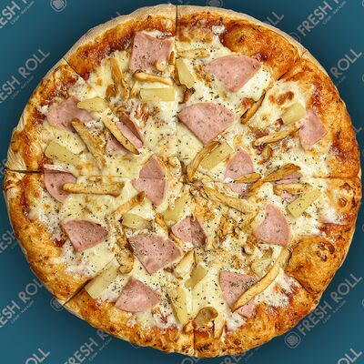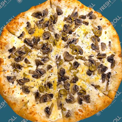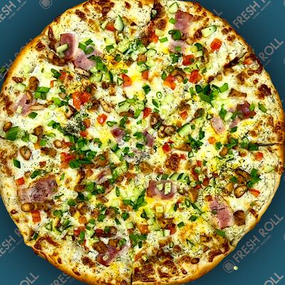 Шампиньоны, курица, пармезан, моцарелла, соус сырный, соус альфредо, орегано