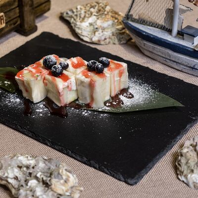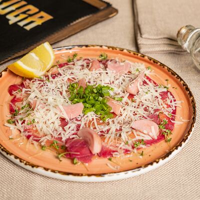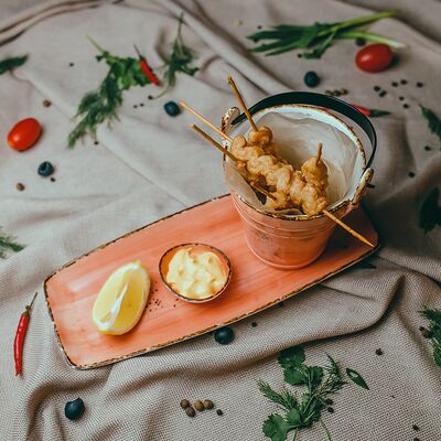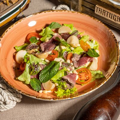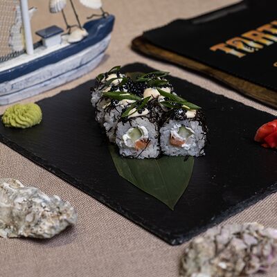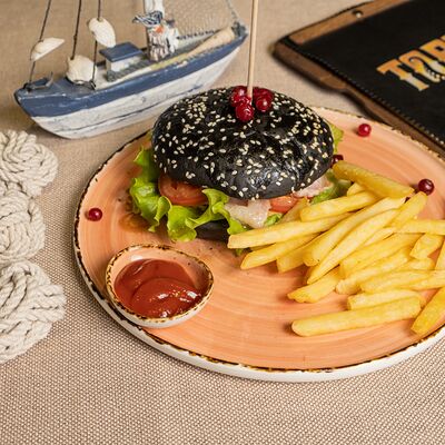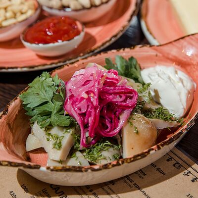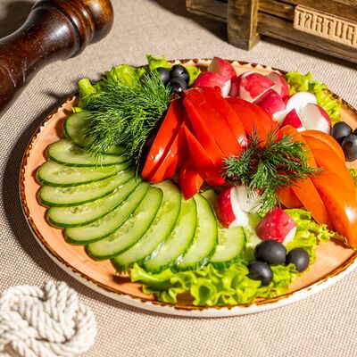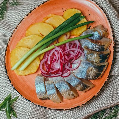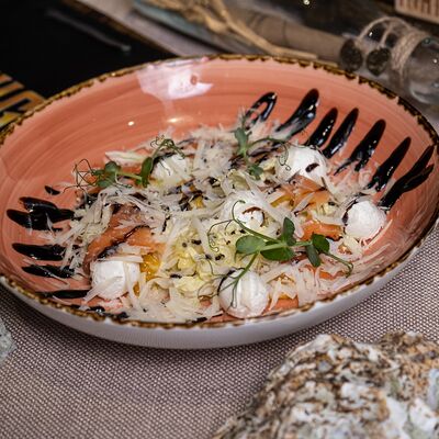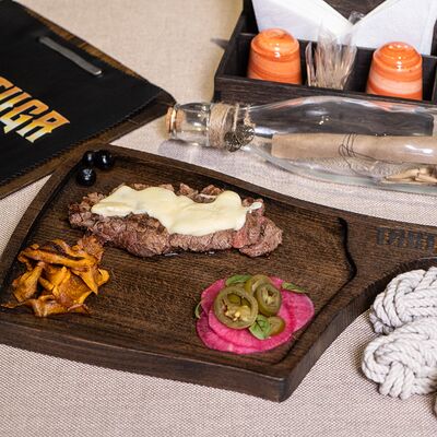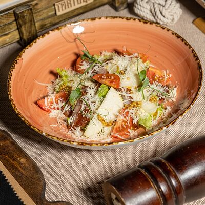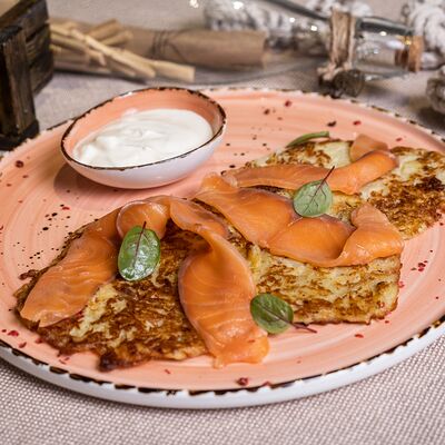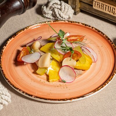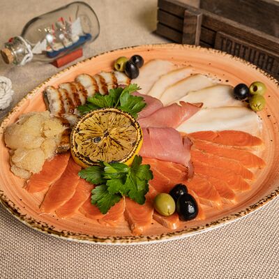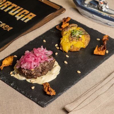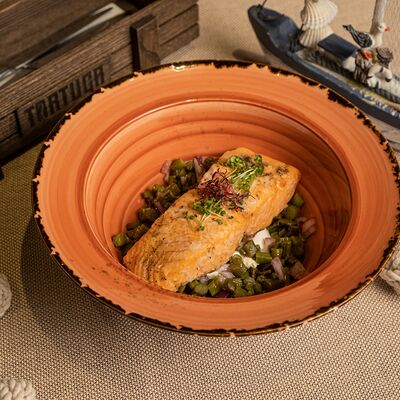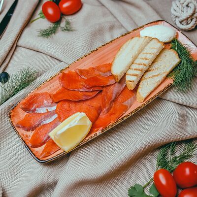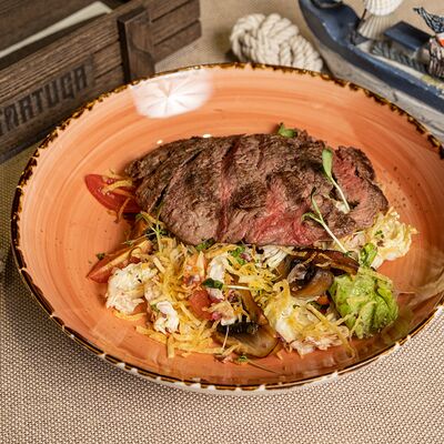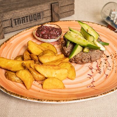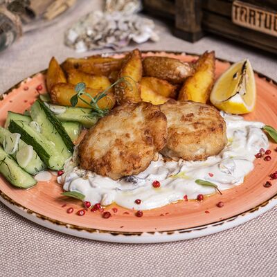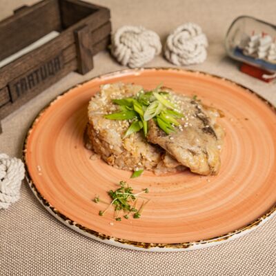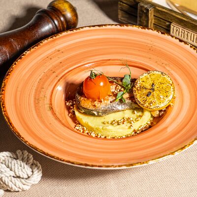 Стейк из форели, картофель, молоко, паста васаби, помидоры черри, крупа гречневая, лимон
