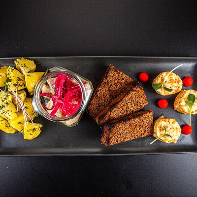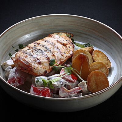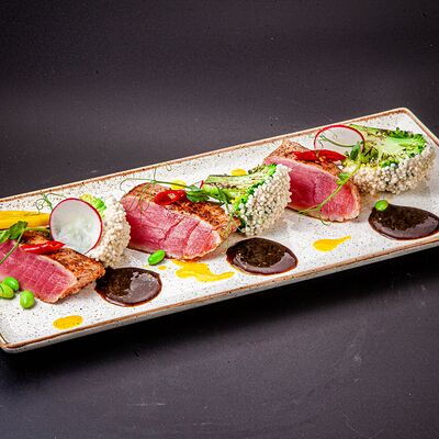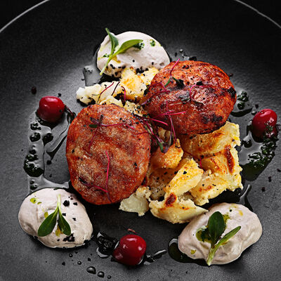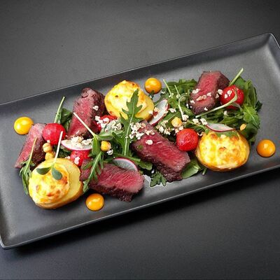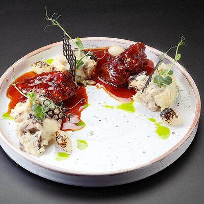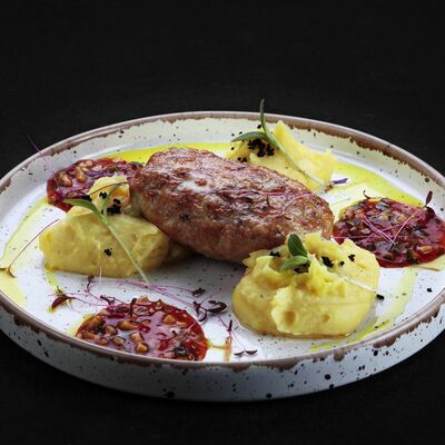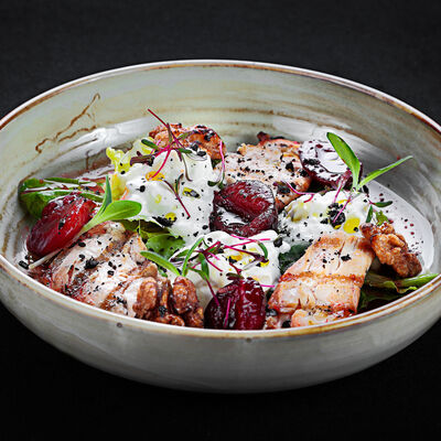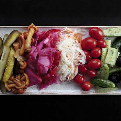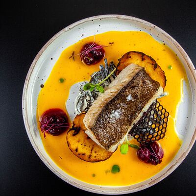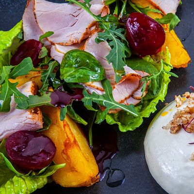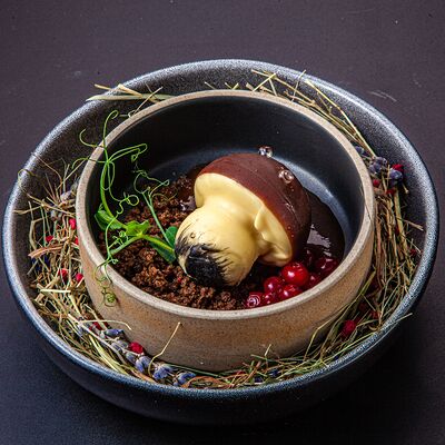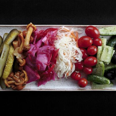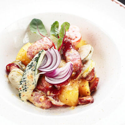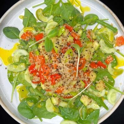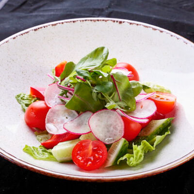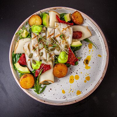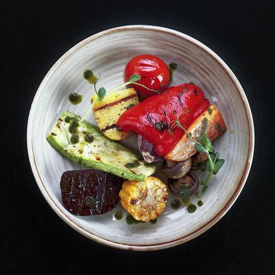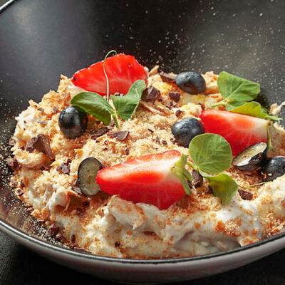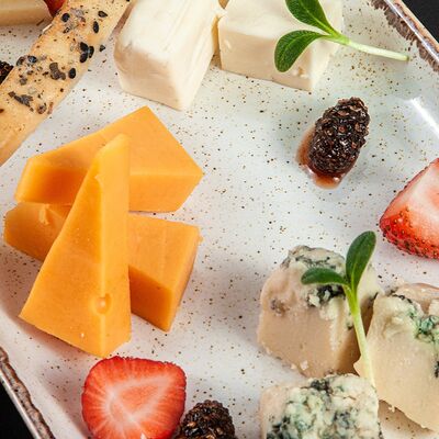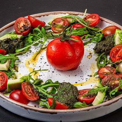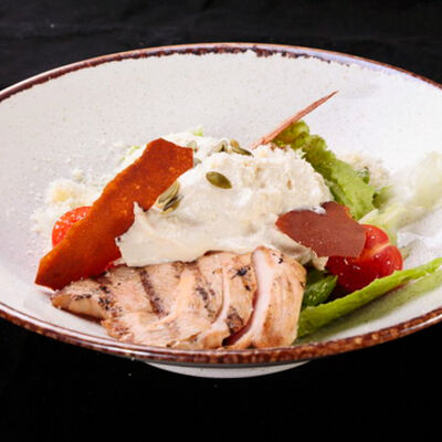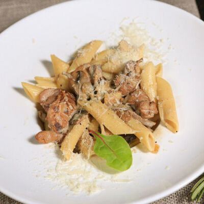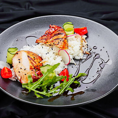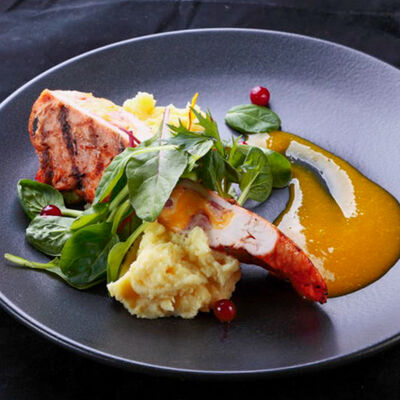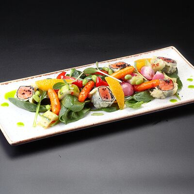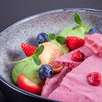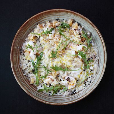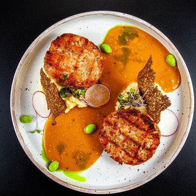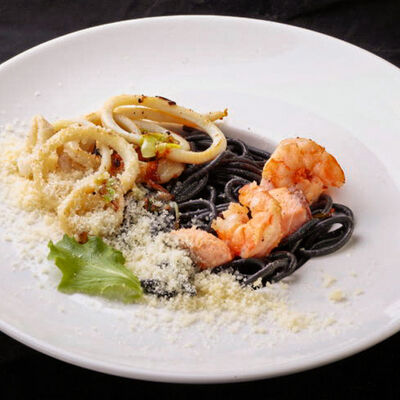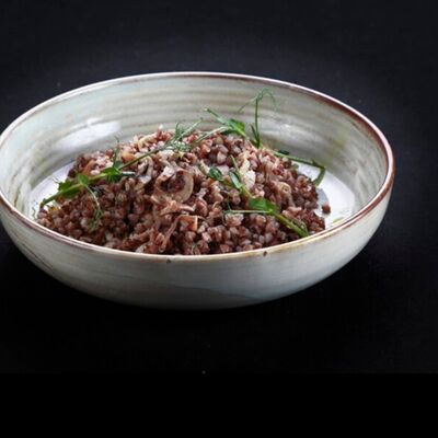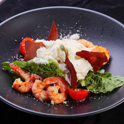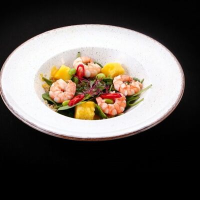 Паста орзо, креветки, масло, сливки, печенья тыква, салат микс, масло из морковок, сыр пармезан, микрозелень
