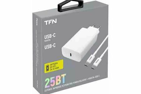 Сетевое зарядное устройство TFN Type-C PD 25W+кабель Type-C white доставка