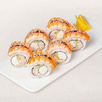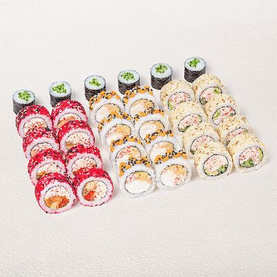 Ролл Калифорния в кунжуте, ролл Азия Чикен, ролл Лосось Рэд, ролл с огурцом 706 г