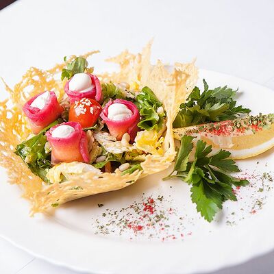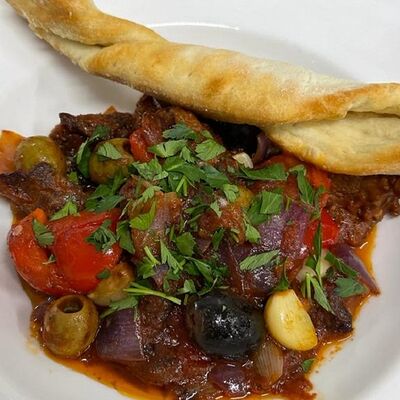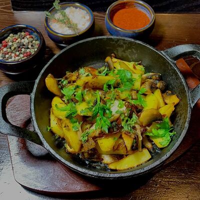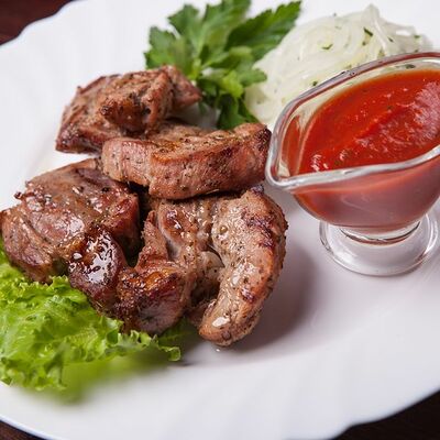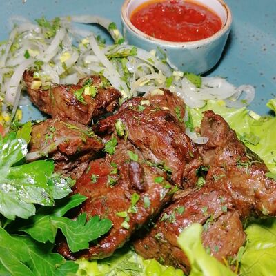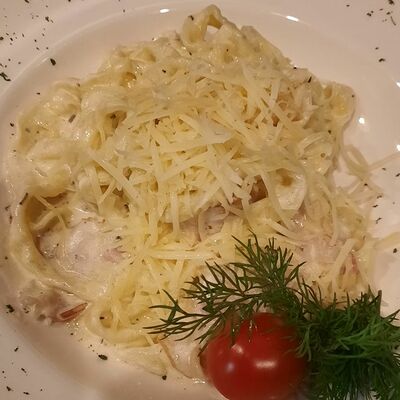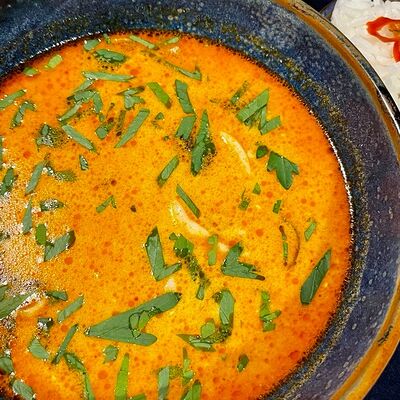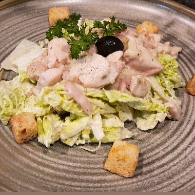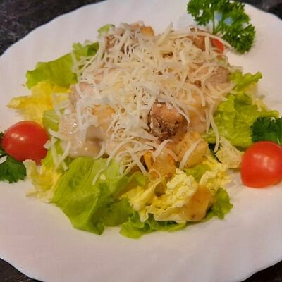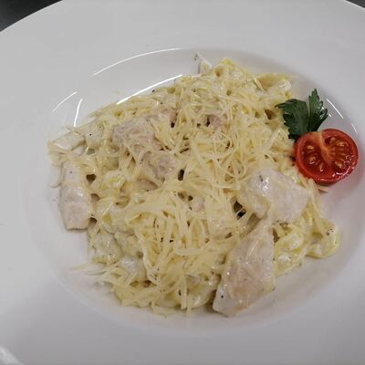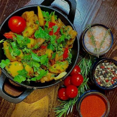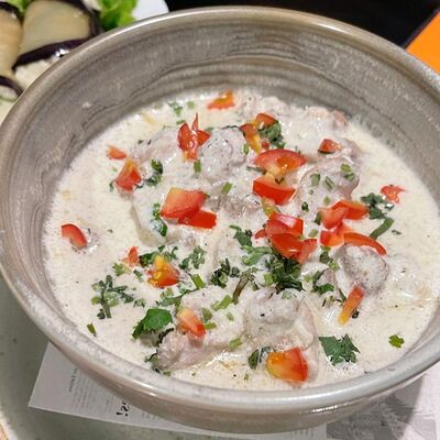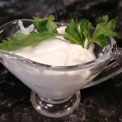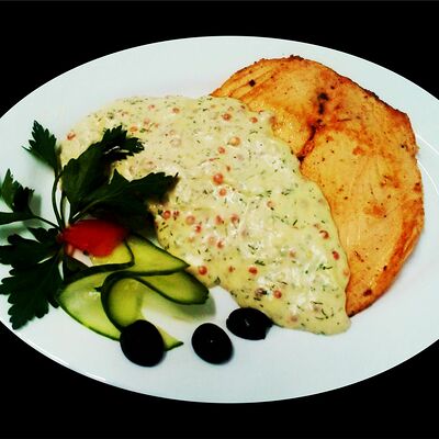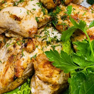 Курица, приготовленная в чесночно-сметанном соусе с добавлением зелени и приправ