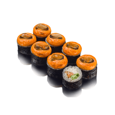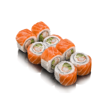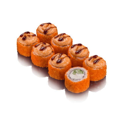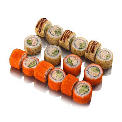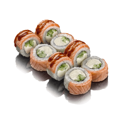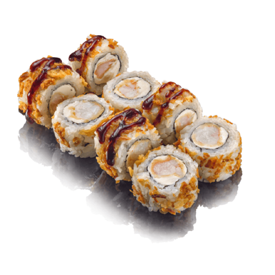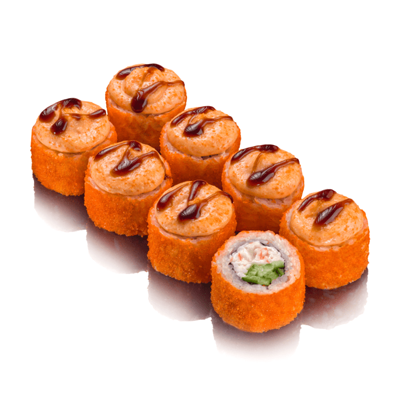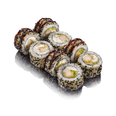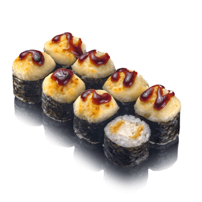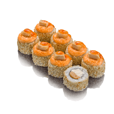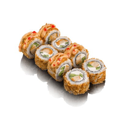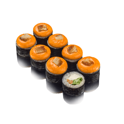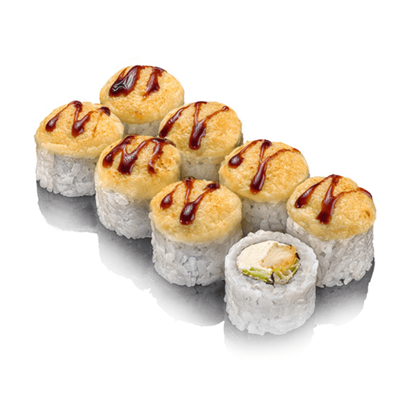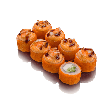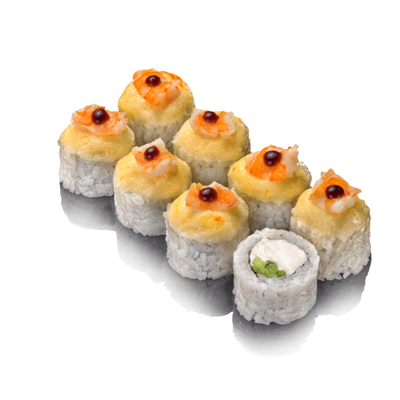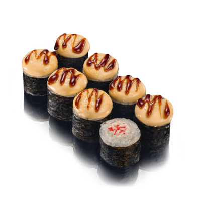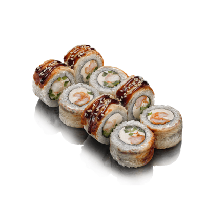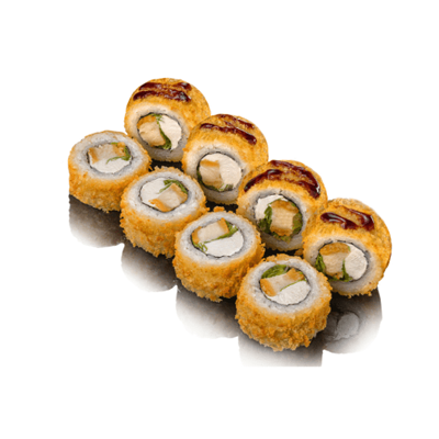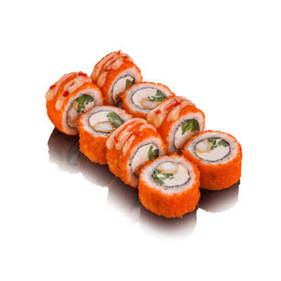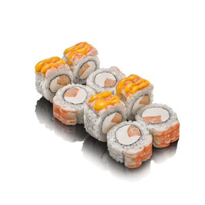 Рис, нори, тигровая креветка, сыр сливочный, японский омлет, соус манго
