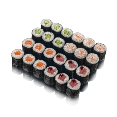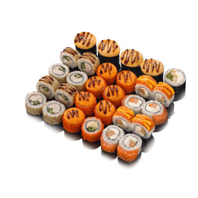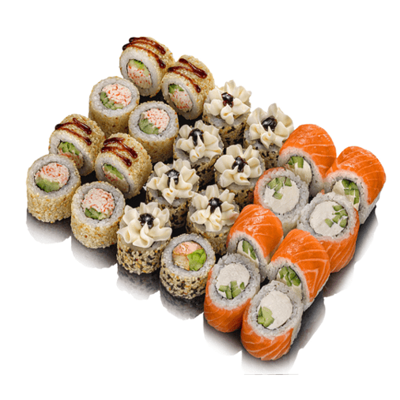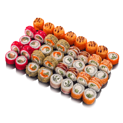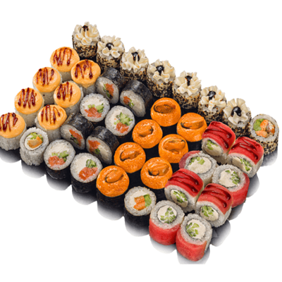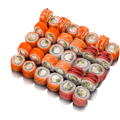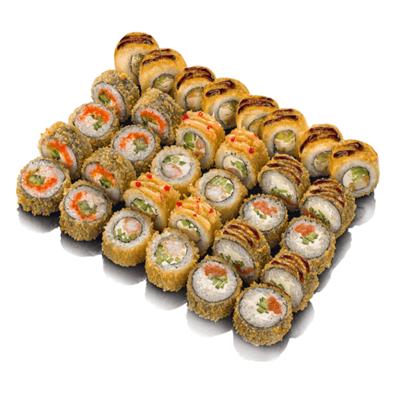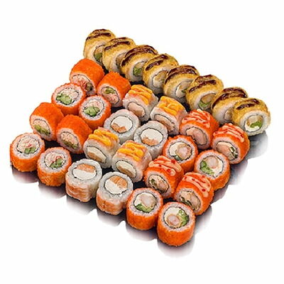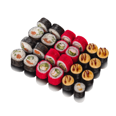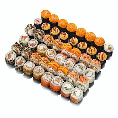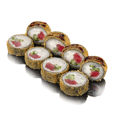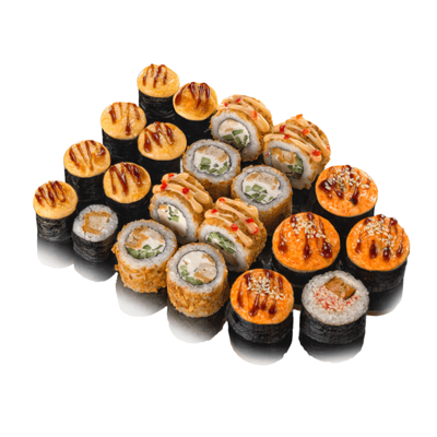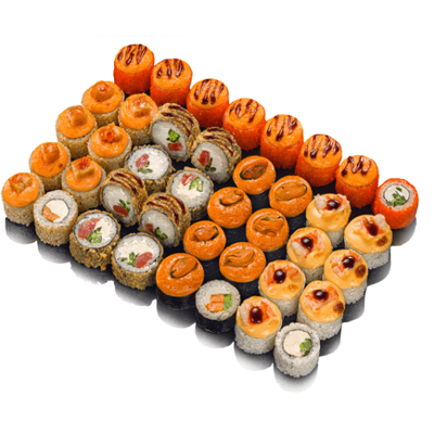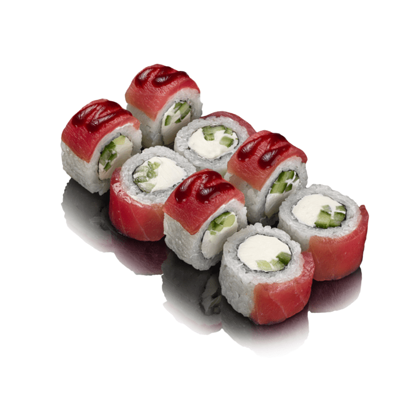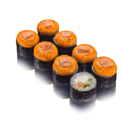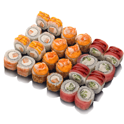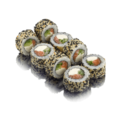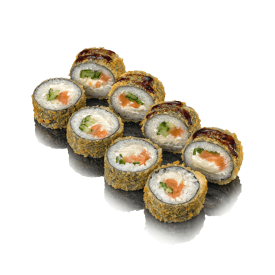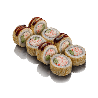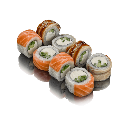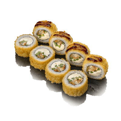Рис, нори, тигровая креветка, сыр сливочный, японский омлет, соус манго