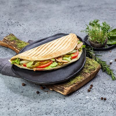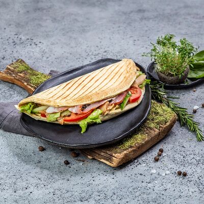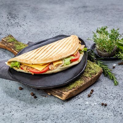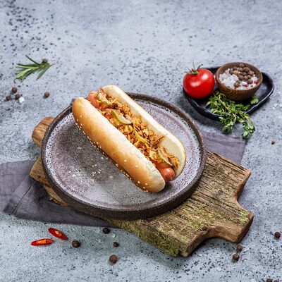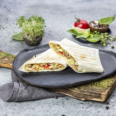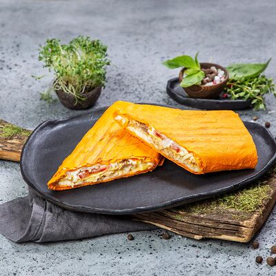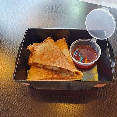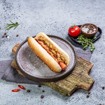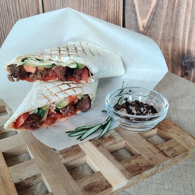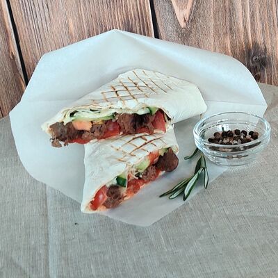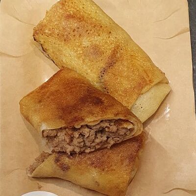 Молоко, мука пшеничная, вода, яйцо, масло подсолнечное, фарш из говядины, сахар, соль, сода пищевая (2 шт.)